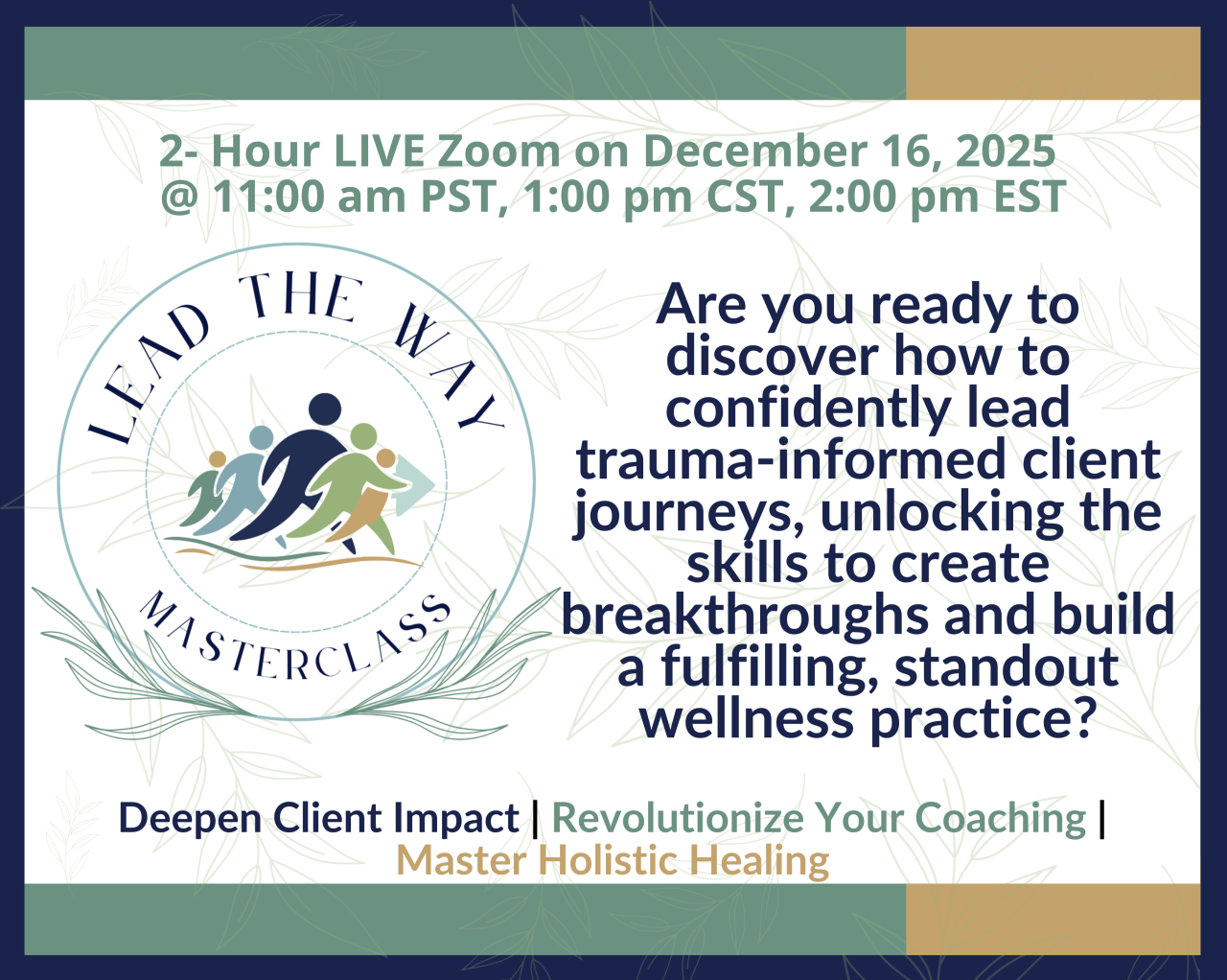 We help wellness practitioners break free from the protocol-driven, supplement-heavy approach by mastering a truly holistic, trauma-informed framework that interweaves physiology and psychology—empowering you to create lasting transformations, elevate your coaching confidence, and build a thriving, stand-out practice.