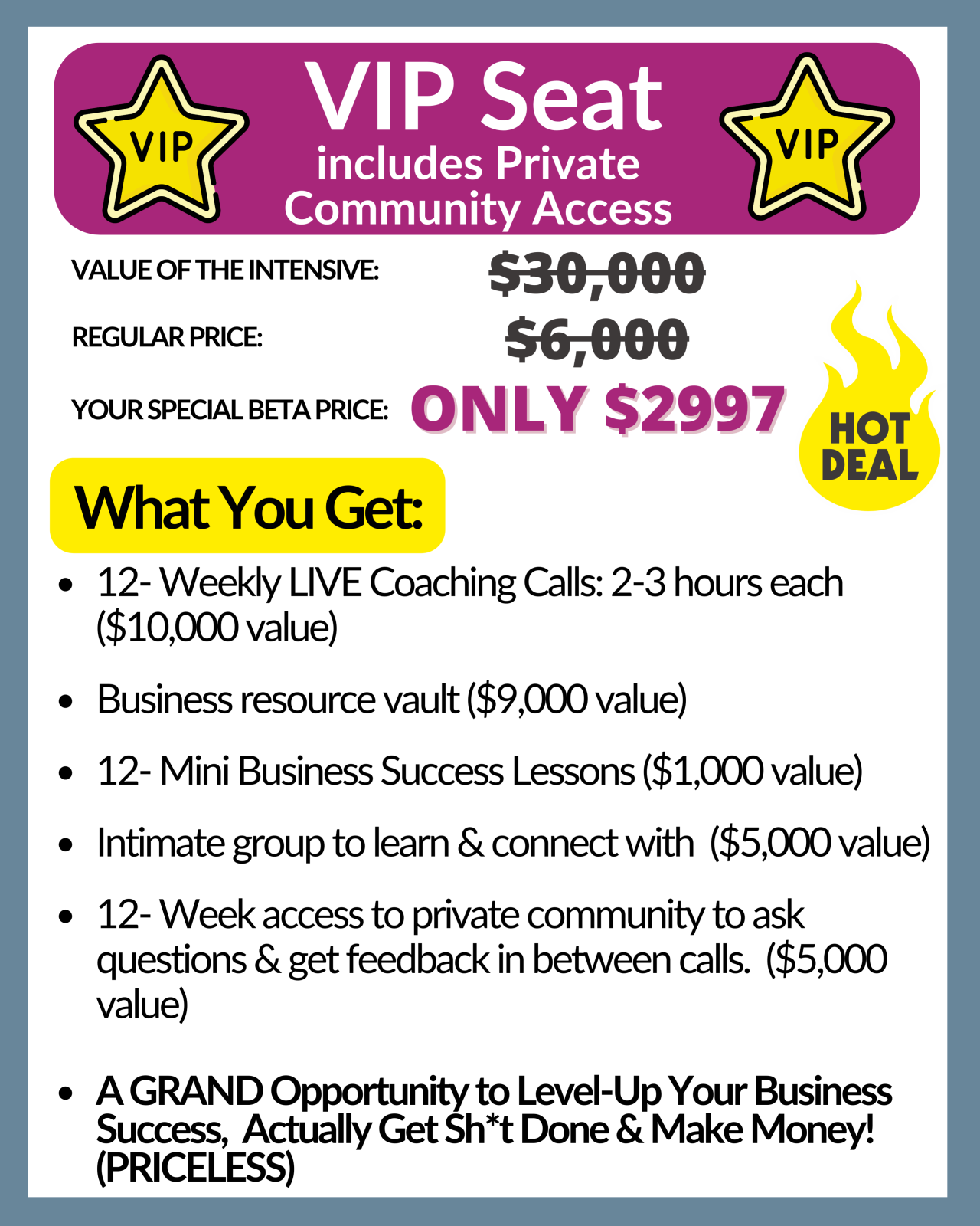 You get direct eyes on your offers, messaging, sales pages, marketing, and growth plan.