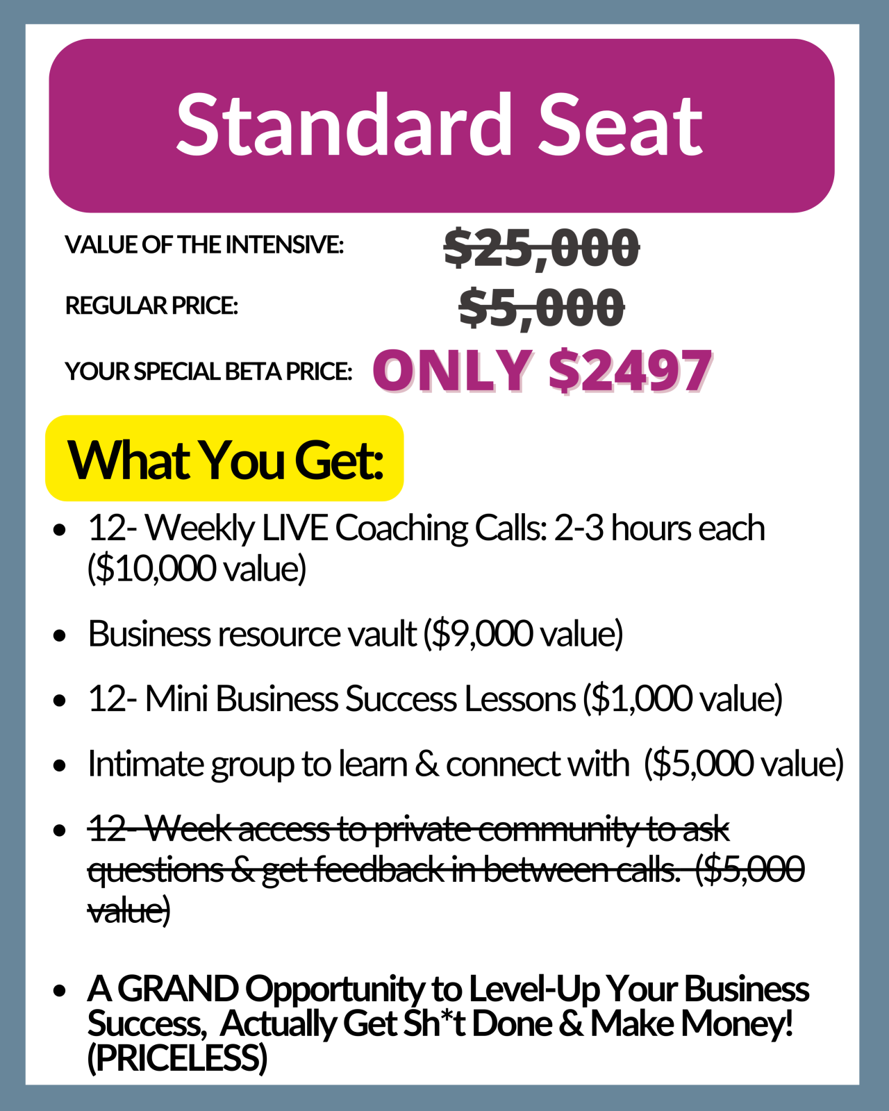 Inside this intensive, we apply them to your business — with you (NOT for you).
