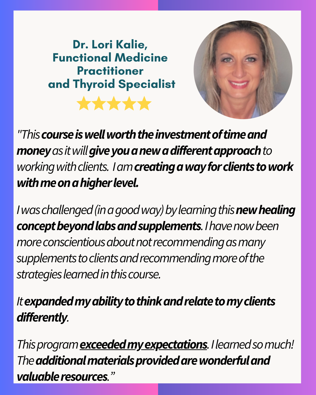 This program doesn’t just teach you how to interpret lab results—it teaches you how to work with clients in a way that empowers them.